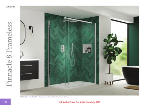 Pinnacle 8 Frameless PINNACLE 8 FRAMELESS • Sliding Corner Door With Side Panel • Chrome 122 All Kudos Prices Are Valid From July 2025