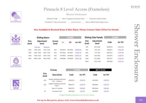 For up-to-date prices, please visit: www.formulabathrooms.co.uk 123