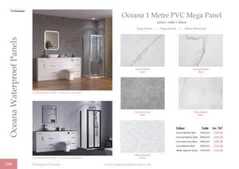 290 Waterproof Panels www.formulabathrooms.co.uk