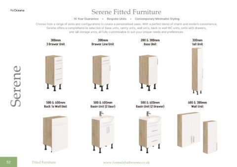 Serene offers a comprehensive selection of base units, vanity units, wall units, back to wall WC units, units with drawers,